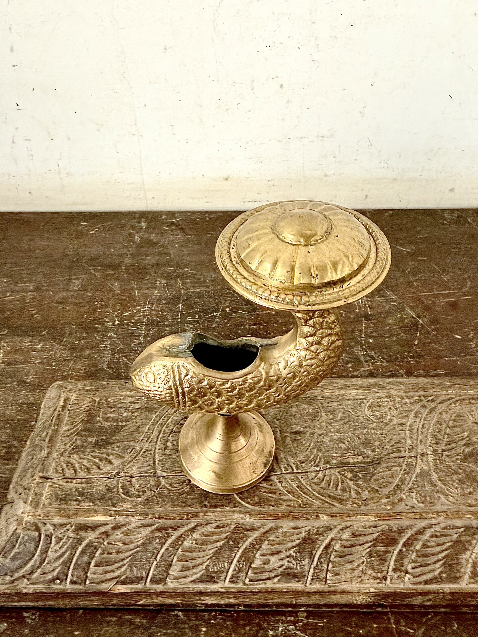 Rare ash tray featuring a gold fish with shade top golden bronze
